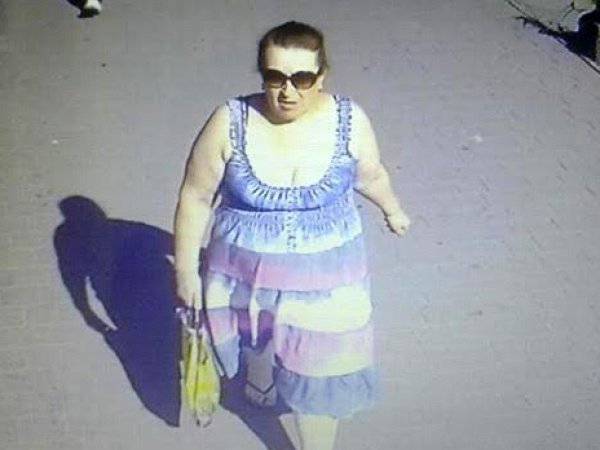 2) вік 35, зріст середній, волосся темно-русяве, пряме; середньої тілобудови, одягнена в коричневу блузку, чорну спідницю, з собою мала чорну сумку з коричневою вставкою.