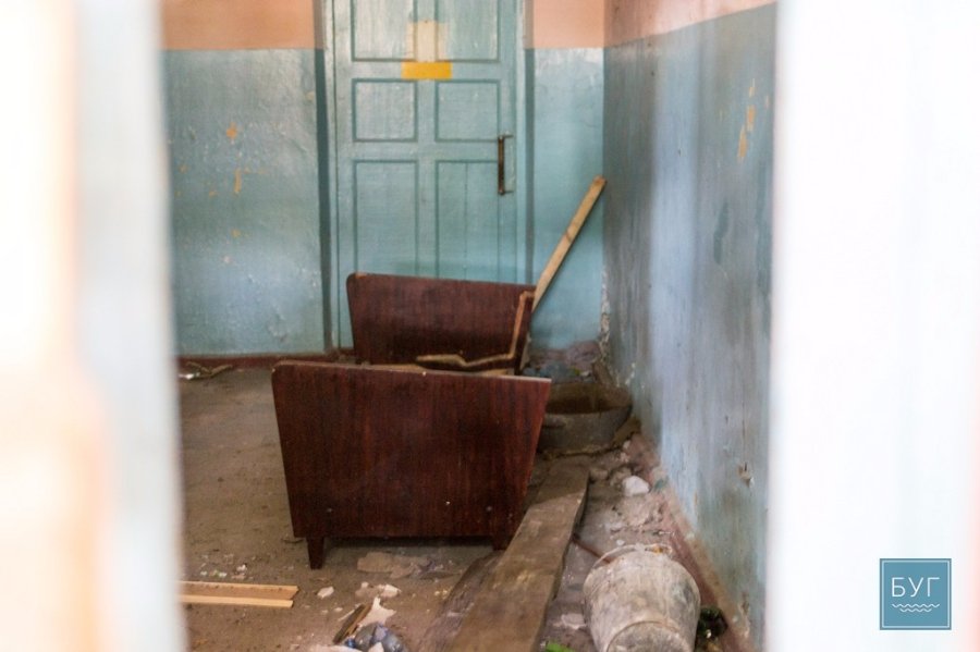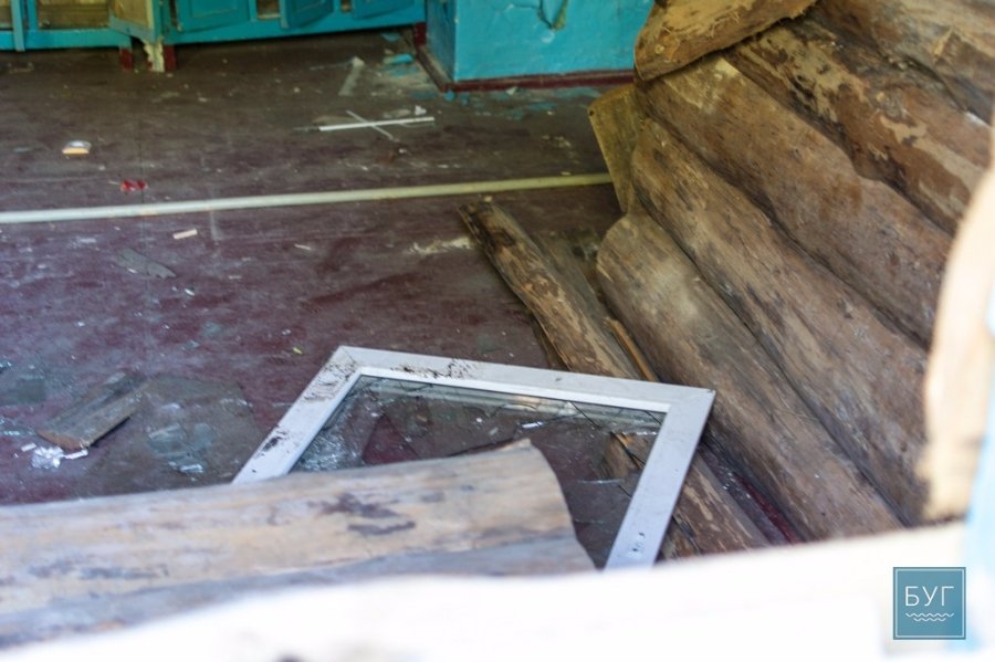 Проте, підійшовши ближче, привертає увагу кричуща занедбаність – вибиті вікна, абияк забиті дошками, порожні пляшки, скло. Добре видно, що споруда давно не використовується.