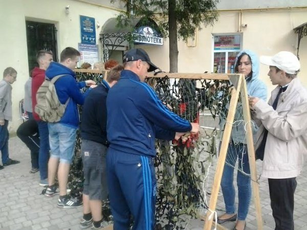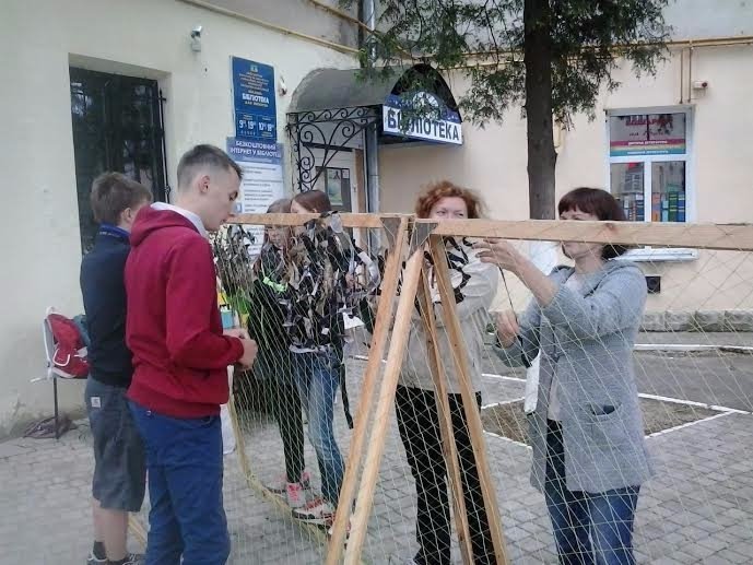 Упродовж дня, у четвер, 7 липня, біля Волинської обласної бібліотеки для юнацтва (пр. Волі, 2) лучани плели маскувальну сітку, яку потім відправлять у зону.