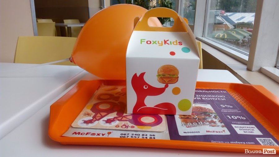 Наступного дня виїжджати з Русанівки ми не хотіли, тому пішли у ще один заклад швидкого харчування під назвою Мcfoxy. Це щось на кшталт McDonald’s, але ціни трохи вищі, хоча все інше бажає залишатись кращим. Перша ознака того, що заклад не дуже популярний, - відсутність відвідувачів. Пусто і тихо. Ну добре, взяли ми Foxykids, в принципі, те саме, що і Хеппі Міл.