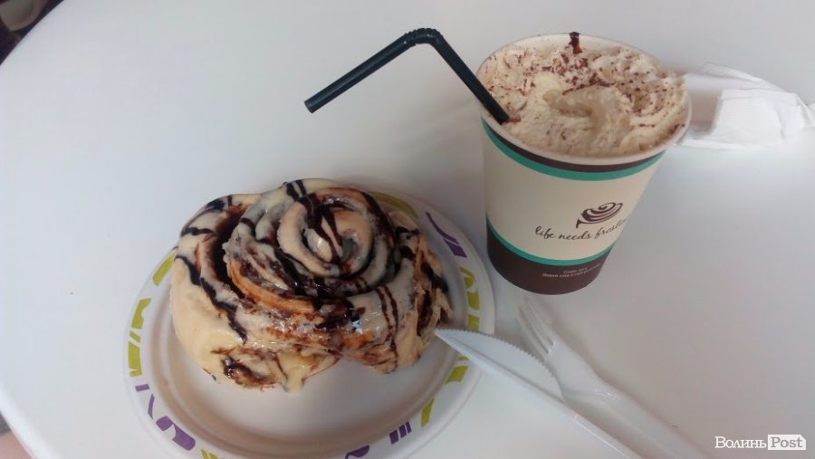 Я чізбургери не люблю, тому пройшлася всіма кафешками у пошуках чогось цікавого. Мою увагу привернула кав’ярня Сinnabon.
