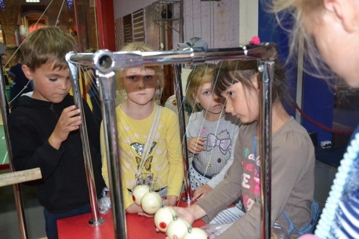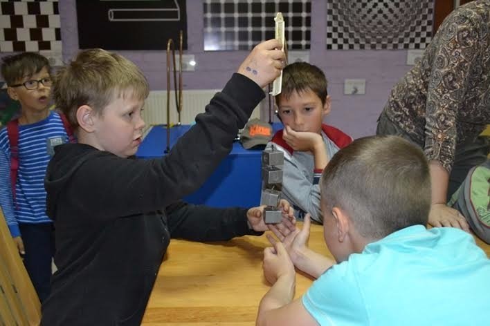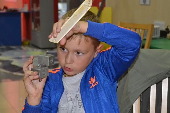 Після гри всі йдуть у Музей технічного прогресу за новими знаннями. На столі на них вже чекають динамометри для вимірювання сили тяжіння і сили тертя. Цікавлюсь, що вони роблять. Зосереджений на дослідженні Іванко відповідає коротко: "Міряємо силу".