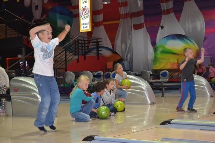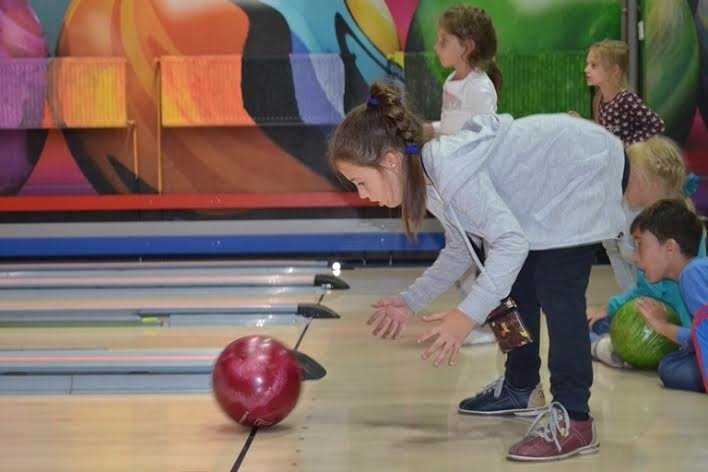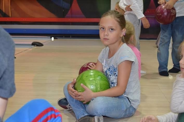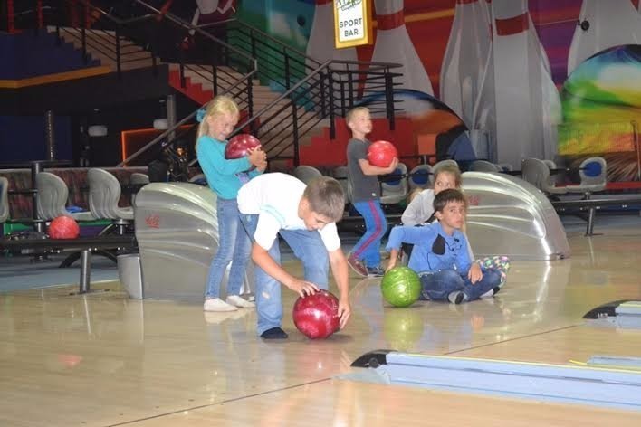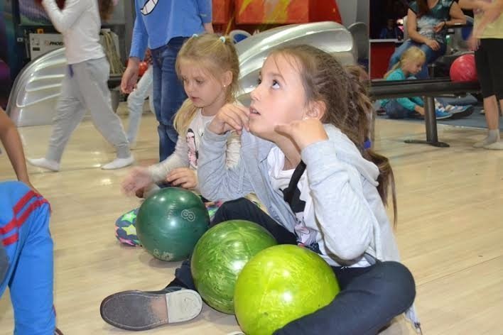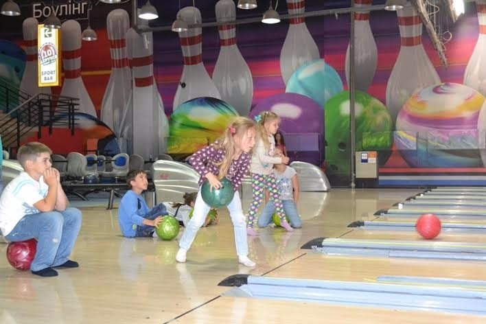 Учасників інтелектуального табору "Пізнайко" знаходимо на боулінгу. Діти зосереджені на грі, по-черзі запускають кулі по доріжках. Всі уважно стежать за результатами на табло.