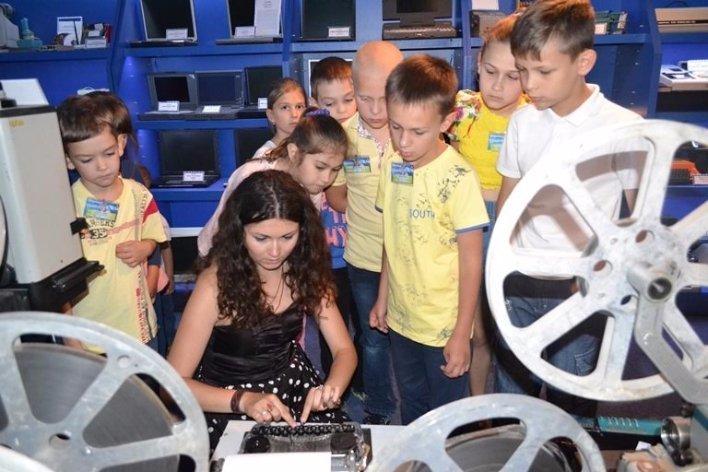 Біля входу у Музей технічного прогресу чуємо дитячий гамір - це юні таланти з мистецького табору "Творча майстерня" прийшли на екскурсію, щоб познайомитись з найцікавішими винаходами людства від первісних часів до сучасності, а це понад 1500 експонатів, що демонструють розвиток технічного прогресу.