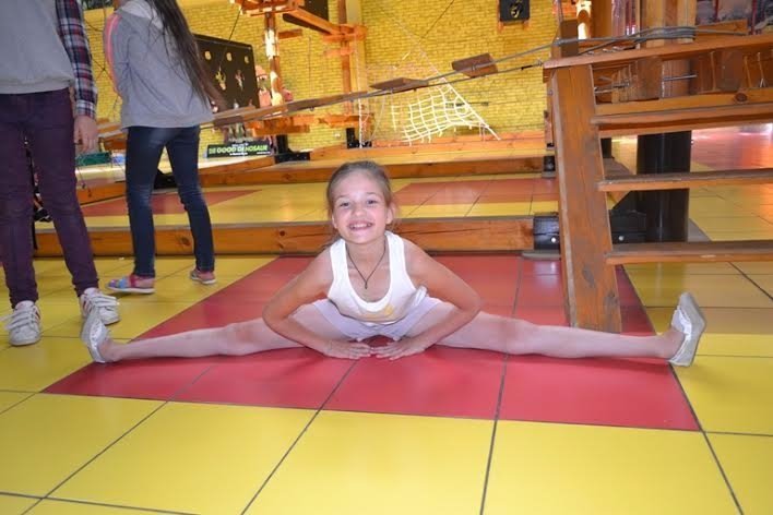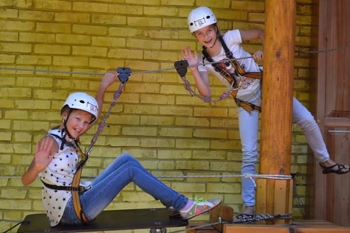 Насамкінець дівчатка демонструють гарну фізичну форму та готуються до проходження мотузкового парку.
