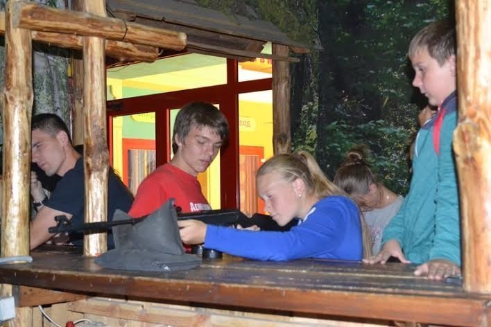 Поки молодші ганяють у м'яча, старші пішли повправлятися у стрільбі у мультимедійний тир.
