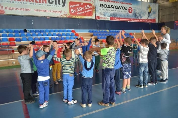 На майданчику "Арена Спорт" теж не менш гамірно. Тут найменшенькі хлопчики із спортивного табору роблять веселу зарядку та ганяють у футбол. До речі, спортивний табір вкотре зібрав найбільше шанувальників. Сюди записалось аж 56 дітей.