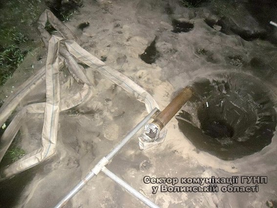 З місця події поліція вилучила мотопомпу та приладдя до неї: шрайбер, пожежні рукави, підсаки.