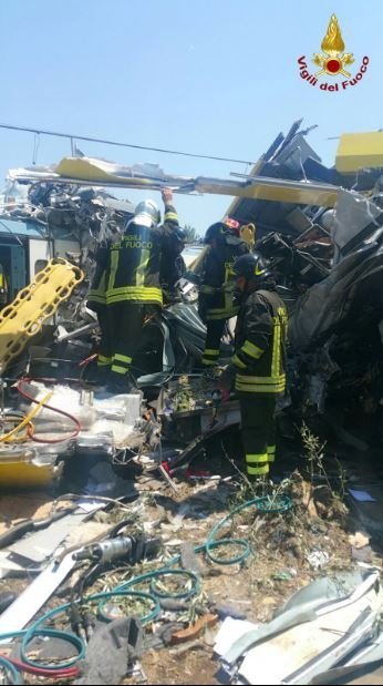 Інцидент стався в провінції Барі в області Апулія на ділянці між містами Андрія і Корато. З фотографій з місця події видно, що потяги отримали серйозні пошкодження. На місці аварії працюють три команди пожежної допомоги, 118 карет швидкої допомоги та поліція з найближчих міст. Під завалами продовжують шукати постраждалих.