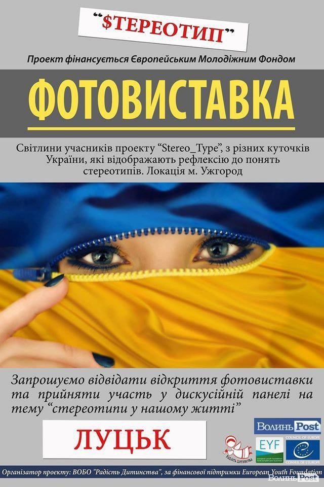 Фотовиставка створена на базі молодіжного проекту “Stereo_Type” як кінцевий результат умовиводів учасників тренінгу щодо впливу стереотипів на наше життя.