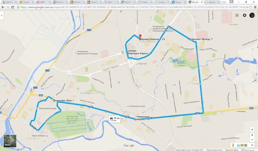 Шлях за маршрутом у прямому та зворотньому напрямках буде пролягати вулицями та проспектами: Глушець, Паркова (Словацького, Богдана Хмельницького), Волі, Рівненська, Відродження, Молоді, Соборності, Карпенка-Карого, Конякіна, ТЦ Слон.