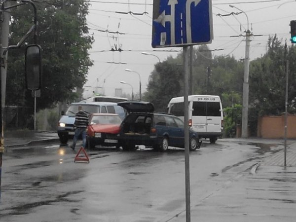 Зокрема автомобілі не розминулися на перехресті, яке обладнане світлофором, крім того, організований рух по смугах.