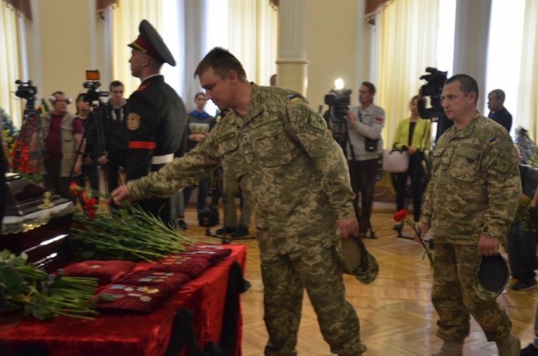 Провести героїчного командира в останню путь прибули начальник Генерального штабу – Головнокомандувач Збройних Сил України генерал армії України Віктор Муженко, командувач Сухопутних військ ЗС України генерал-лейтенант Сергій Попко, офіцери Командування Сухопутних військ, бойові товариші, військовослужбовці гарнізону, рідні.