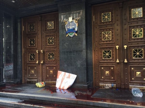 Центральний вхід до Генпрокуратури облили «кров'ю». ФОТО