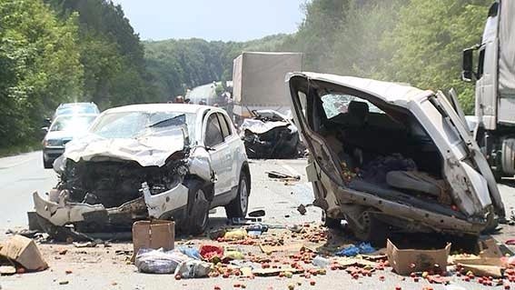 Близько 12:30 на окружній у Вінниці зіштовхнулись "ВАЗ 21015", мікроавтобус Volkswagen, молоковоз та Nissan Qashqai.