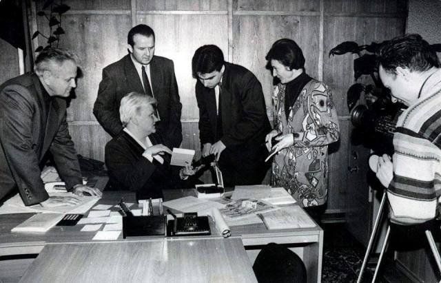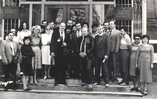 «Незабутня зустріч із легендою центрального телебачення - диктором Ігорем Кириловим. На світлині - журналісти обласних ЗМІ. 1985 рік»