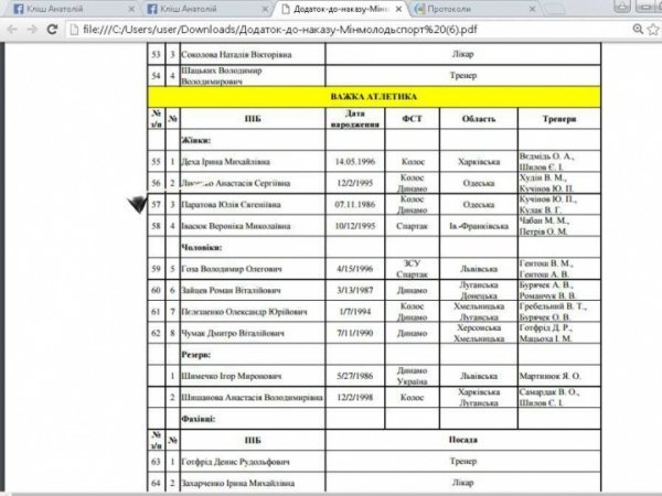 Щодо Юліі Паратової, то, відвовідно до цього ж наказу, вона буде виступати за Одеську область і тренують її відомі фахівці з важкої атлетики України Юрій Кучинов та Василь Кулак.