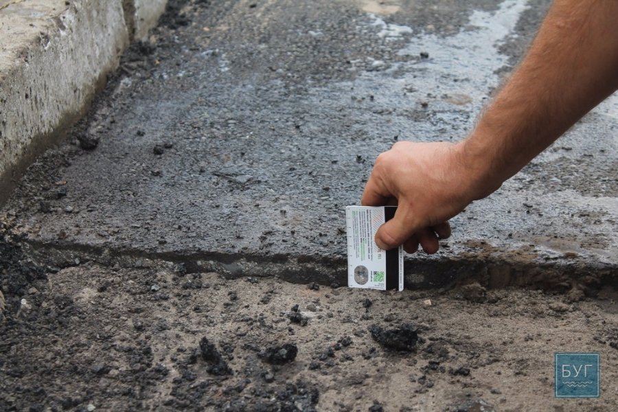 У проектно-кошторисній документації йшлось, що на дорожньому покритті повинно бути 5 сантиметрів асфальту, на тротуарі – 4. Також зазначалось і те, що для основи використано 20 тонн гравію, а по факту трьох зрізів асфальту ніде його не виявили.