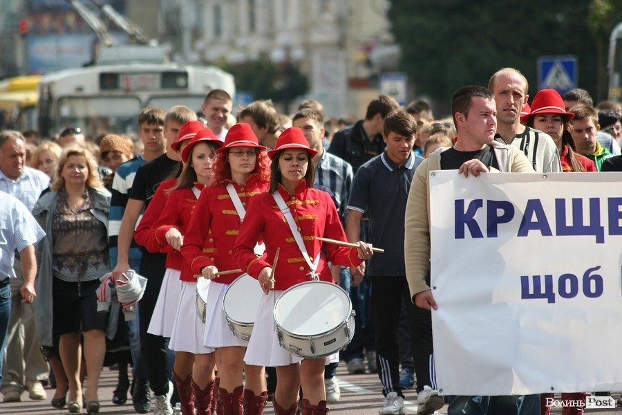 Учасники зібралися біля головного корпусу Східноєвропейського національного університету і пройшлися маршем до Театрального майдану під звуки барабанів.