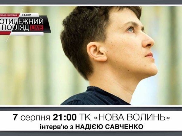 Сьогодні, 7-го серпня, о 21.00 на телеканалі "Нова Волинь" та на Youtube-каналі групи "Протилежний погляд" дивіться інтерв'ю з народним депутатом України Надією Савченко.