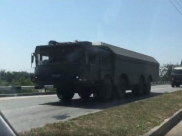 Автор зазначає, що колони військової техніки рухались в сторону Старокримського полігону, що на сході Криму.