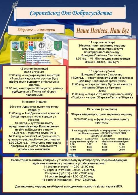 Уже традиційно по обидва боки Західного Бугу відбуваються Дні добросусідства. Цього року вони відбудуться 11–15 серпня і вкотре на кілька днів відкриють іще один перехід на інший бік кордону.