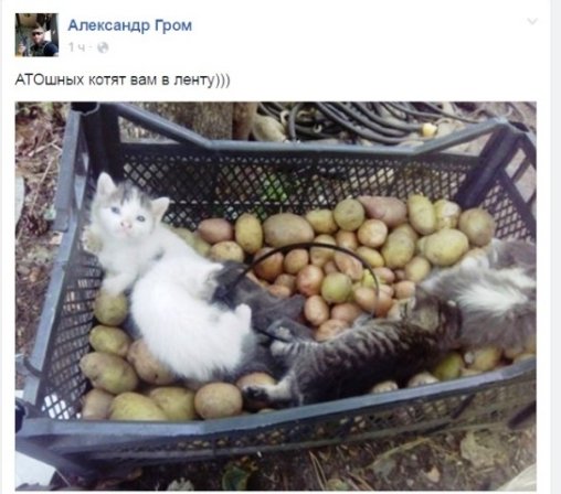 Біля бійців АТО на Донбасі постійно крутиться багато котиків: коти-безхатьки й ті, яких покинули господарі, й ті, що народилися вже за час АТО.
