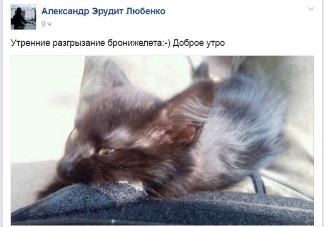 Бійці АТО дуже люблять своїх батальйонних котів, діляться з ними їжею, дають прихист та навіть присвячують їм вірші.