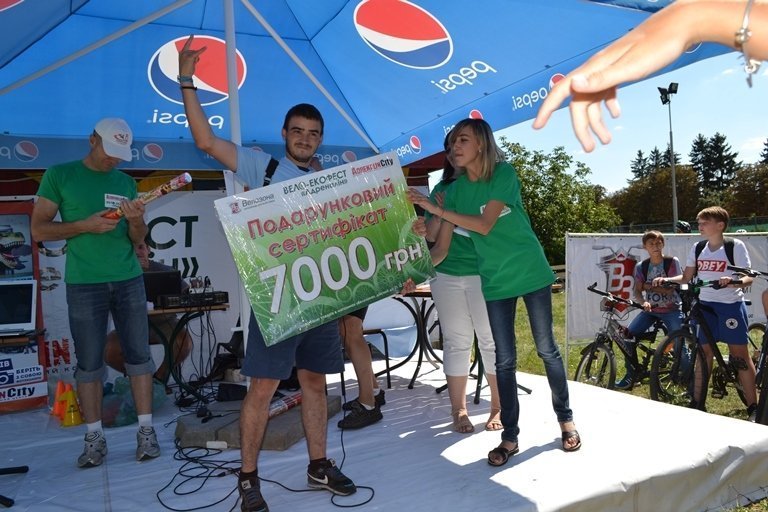 Потому перейшли до розіграшу головного призу - 7000 гривень від генерального партнера велофесту магазину "Велозона".