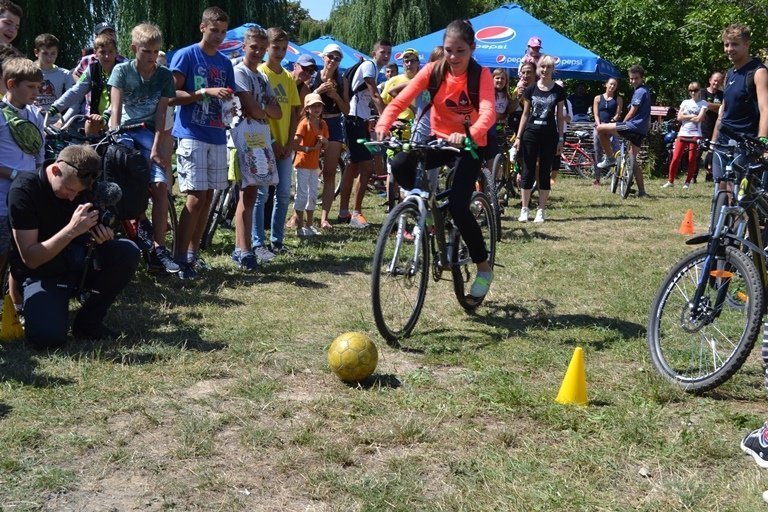 Дорослі змагалися у вправності забити гол у ворота верхи на велосипеді та у Sur place (стійка на велосипеді без опори на землю) та відгадували непрості загадки про велосипедний спорт.
