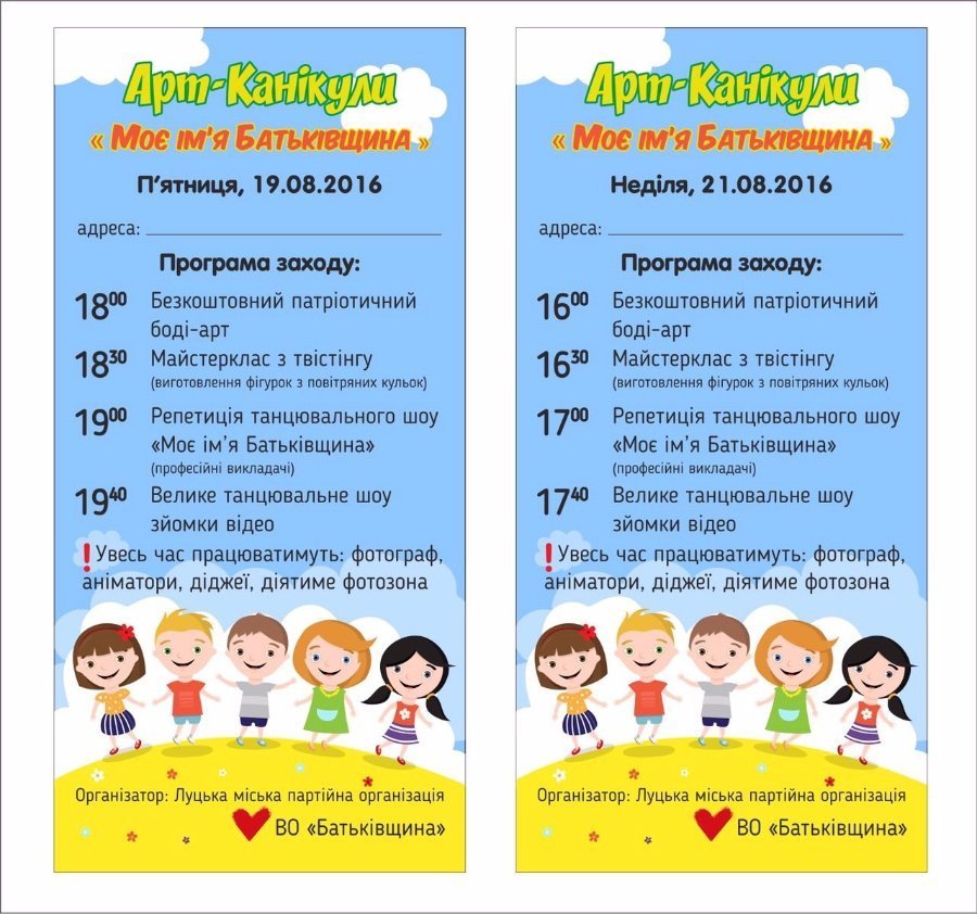 Організатори арт-канікул - Луцька міська партійна організація ВО "Батьківщина".