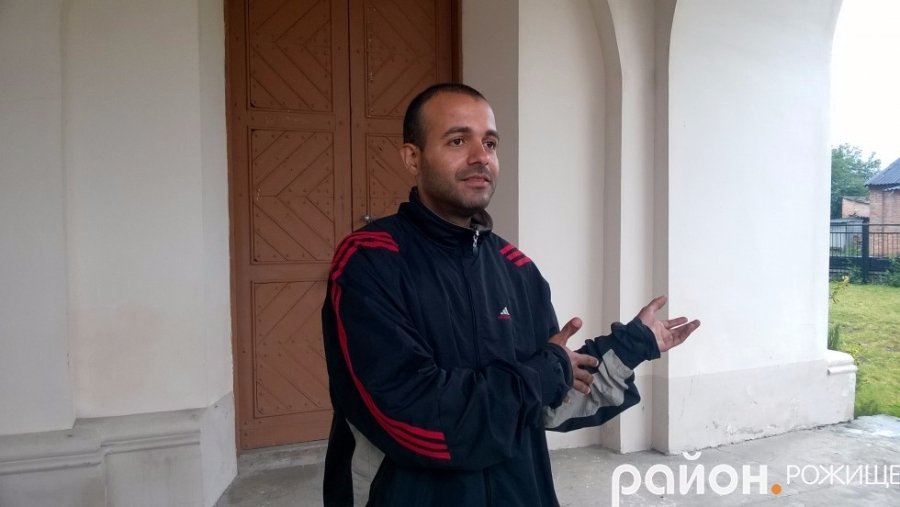 Зробити вимушений привал заставив несподіваний дощ. Чоловік вирішив перечекати негоду, сховавшись під дахом Рожищенського костелу. Там і зустрів його пан Володимир. От тільки порозумітися чоловіки так і не змогли – на заваді став мовний бар’єр.