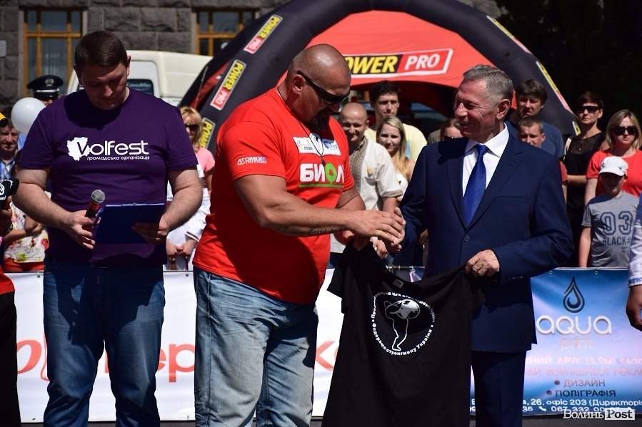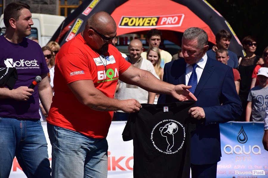 Міський голова привітав присутніх та побажав перемоги найсильнішому. За підтримку заходу йому подарували футболку від федерації. Отож, відтепер Микола Романюк є членом федерації стронгменів України.