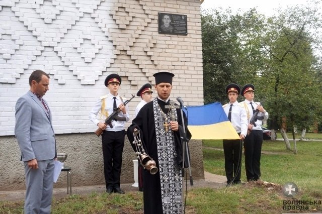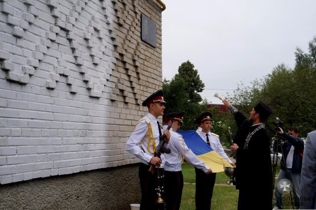 Передусім, усі присутні виконали Державний Гімн України, а священик здійснив обряд освячення дошки.