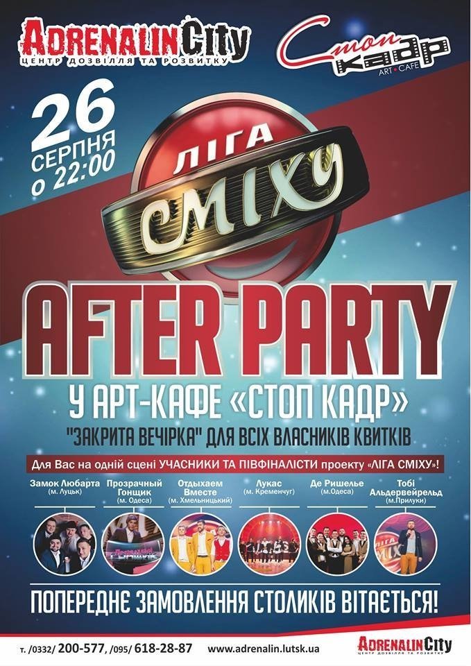 Організатори запрошують усіх бажаючих одразу після завершення концертної програми у арт-кафе "Стоп-кадр" на закриту вечірку "Аfter Party".