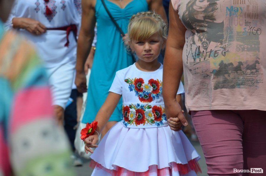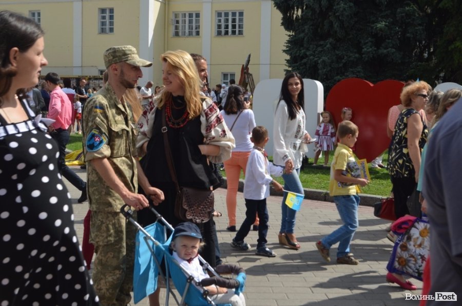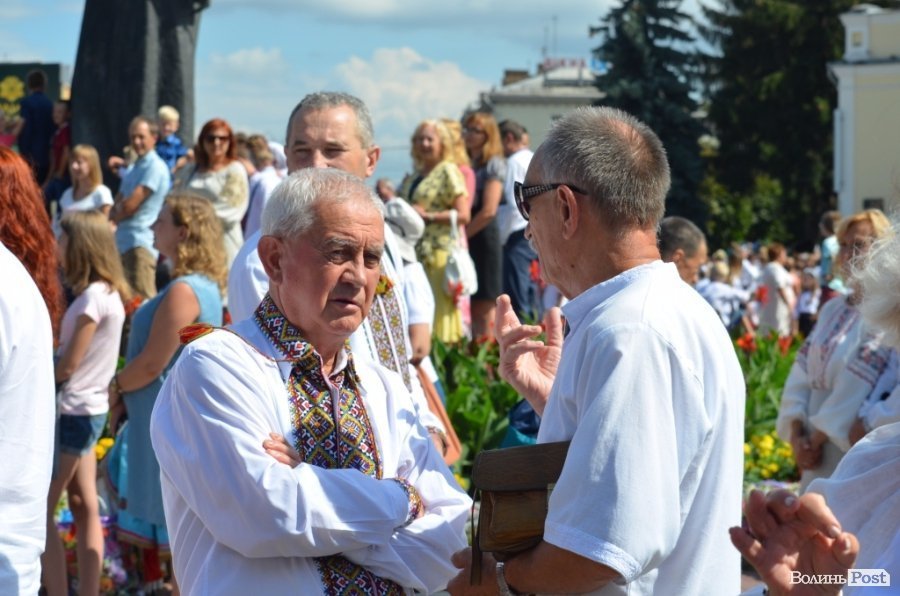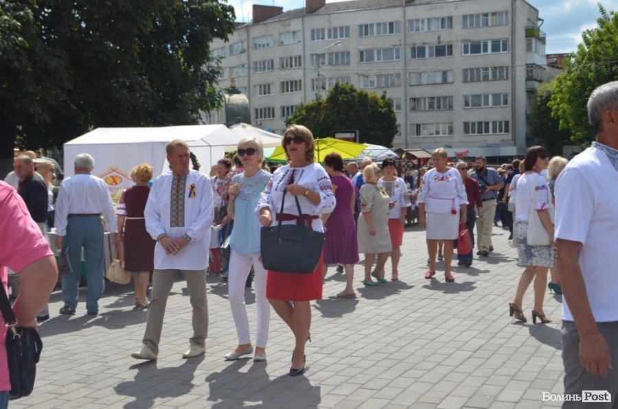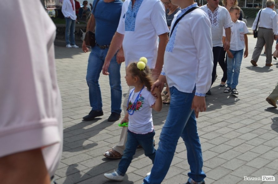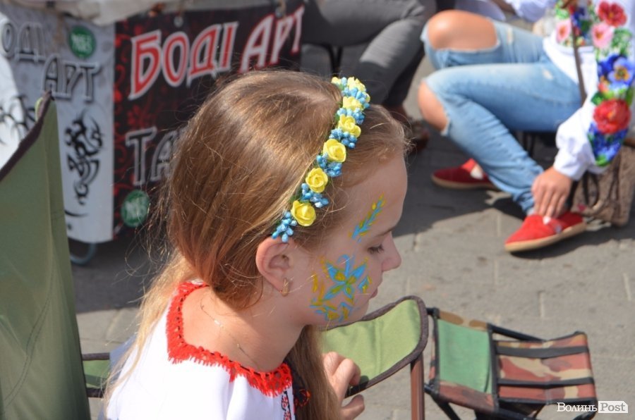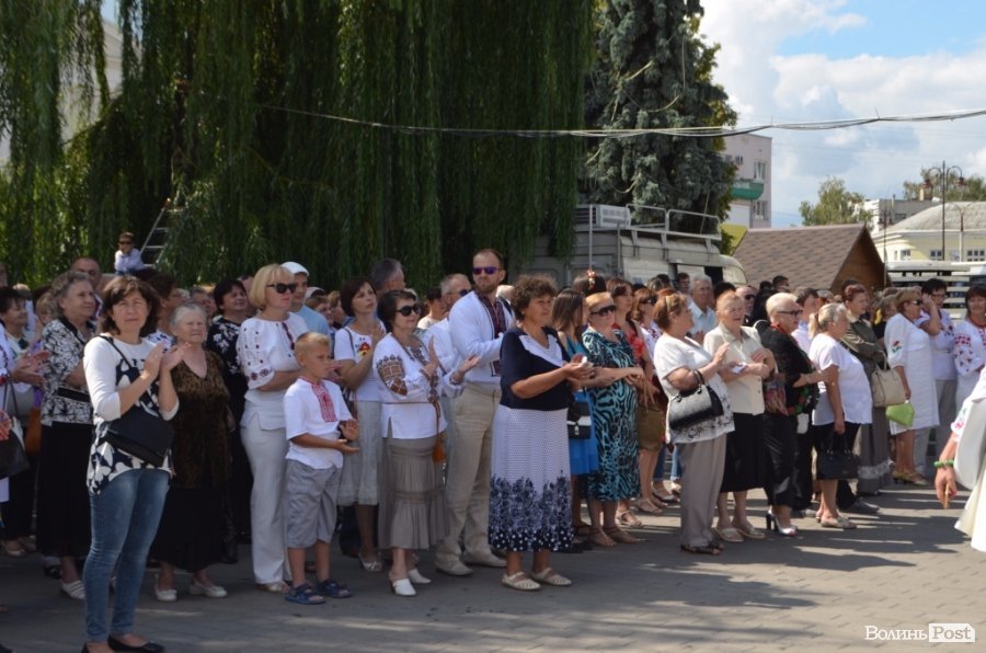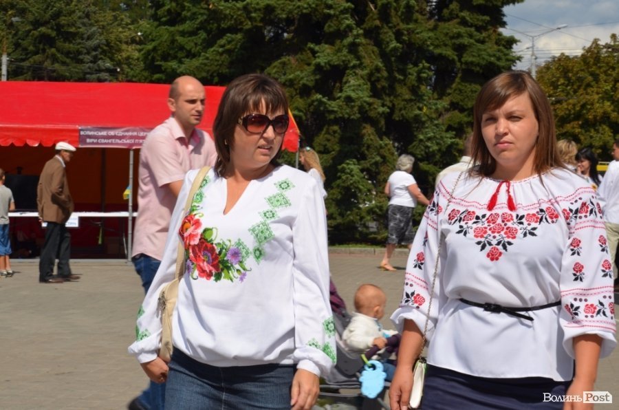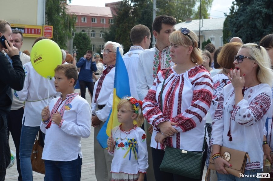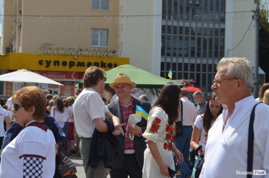 Жителі та гості обласного центру Волині продовжують святкувати 25-ту річницю Незалежності України. Святково вбрані у вишиванки чоловіки та заквітчані молоді дівчата вийшли на центральну площу міста, аби взяти участь у святкових заходах та патріотичному флеш-мобі.