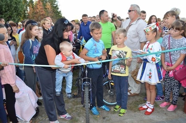 Почесну місію – перерізати символічну стрічку ‒ надали родині Медведюків. У молодій сім’ї зростає троє синочків, всі люблять спорт, і вони гуртом першими проїхались на велосипедах новою набережною.