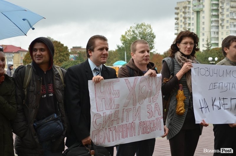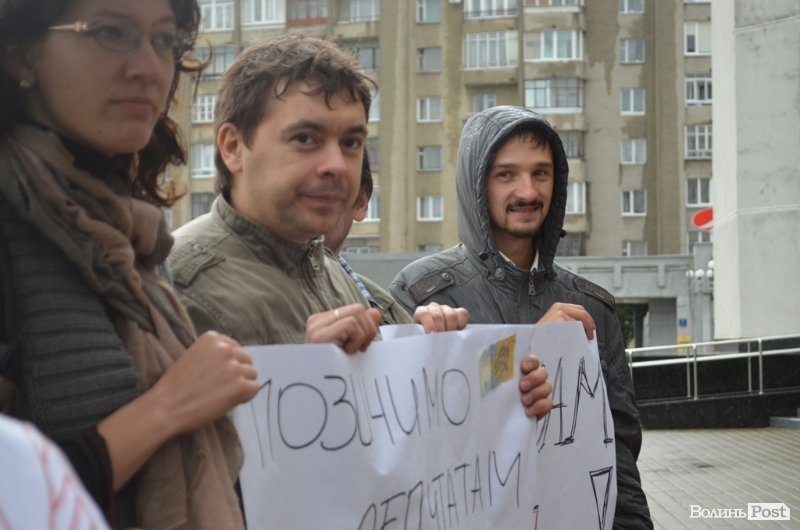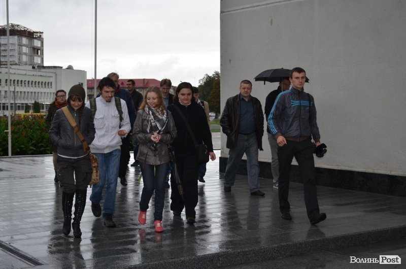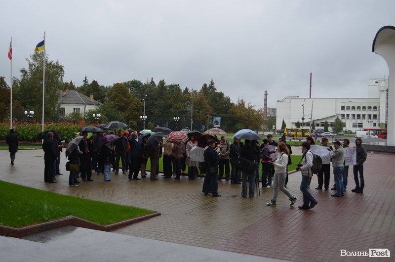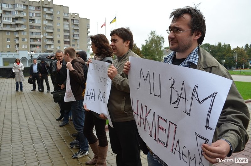 З гаслами «Журналіст - не наклепник» та «Хочемо казати правду» до стін Волинської облдержадміністрації вийшло півсотні луцьких журналістів.