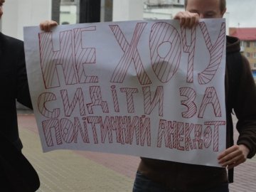 Кілька учасників акції тримали у руках плакати з надписами «Позичимо депутатам на клепку», «Ми вам НАКЛЕПаємо», «Не хочу сидіти за політичний анекдот», «Позичте депутатами НА КЛЕПКУ».