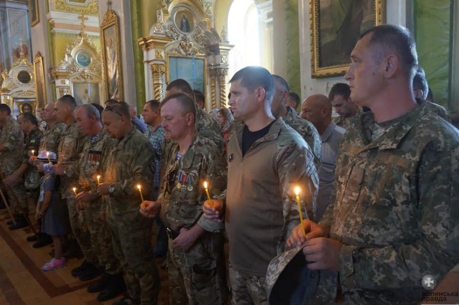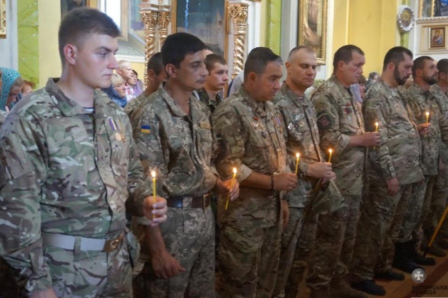 За богослужінням молилися учасники АТО, їх рідні та близькі, у тому числі і ті, хто втратив під час неоголошеної війни на сході України своїх бойових побратимів, рідних та близьких.