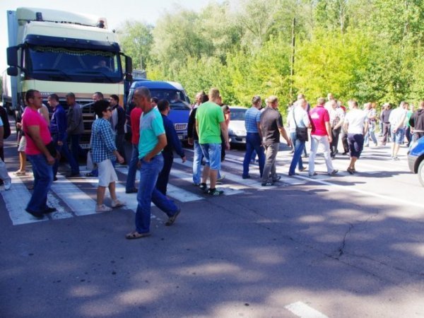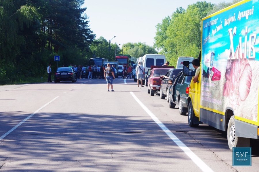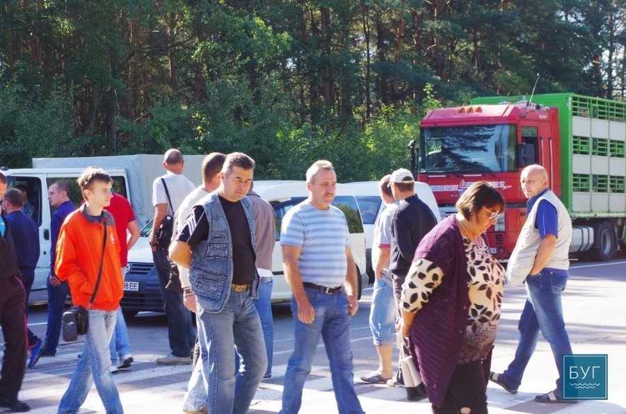 Працівники безперервно пересуваються по пішохідному переходу, перешкоджаючи цим руху транспорту по трасі міжнародного значення, - повідомляє БУГ.