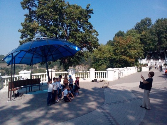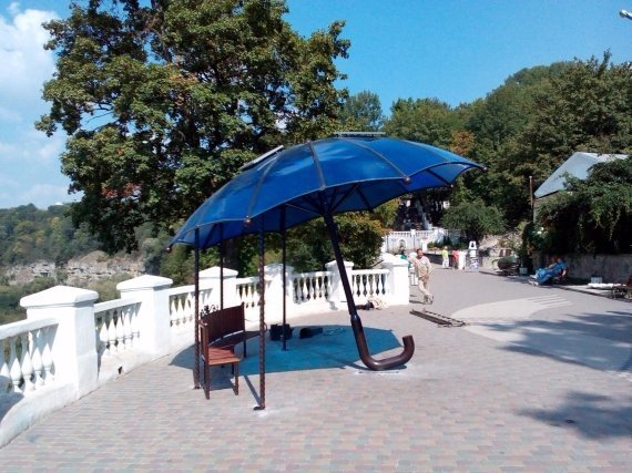 Як зазначив заступник Кам'янець-Подільського міського голови Сергій Бабій, парасоля виконуватиме ще й свою "основну" функцію – захист від дощу та сонця, для цього облаштували лавочку.