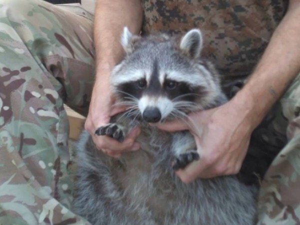 "Знайомтеся, це - наші єноти. Єнотик Проха! Каратєль ще той! Дуже небезпечний при зустрічі з сепарами, може вкусити і відкусити. Дуже любить обійматися з друзями", - написав він.