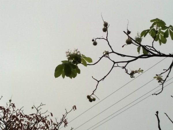 Два года назад в сентябре под Харьковом я сделал фото. На одной ветке конского каштана одновременно плоди и распустившийся цветок.