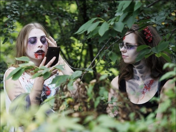 Учасники заходу розважалися, охоче позували перед камерами та лякали перехожих своїм моторошним зовнішнім виглядом.