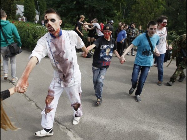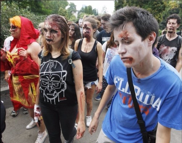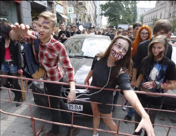 Молодь у костюмах живих трупів із закривавленими обличчями та одягом гуляла вулицями столиці, повідомляє ТСН.