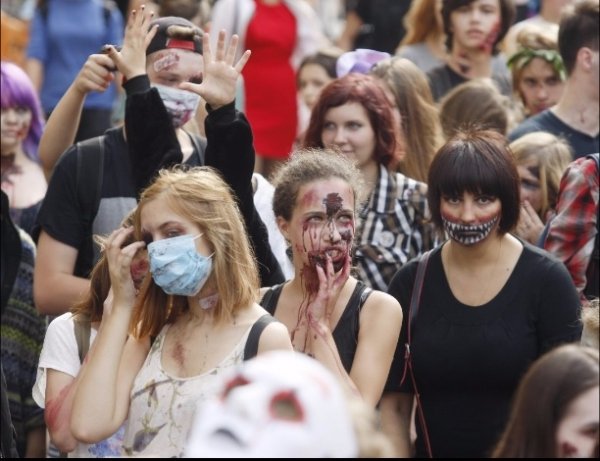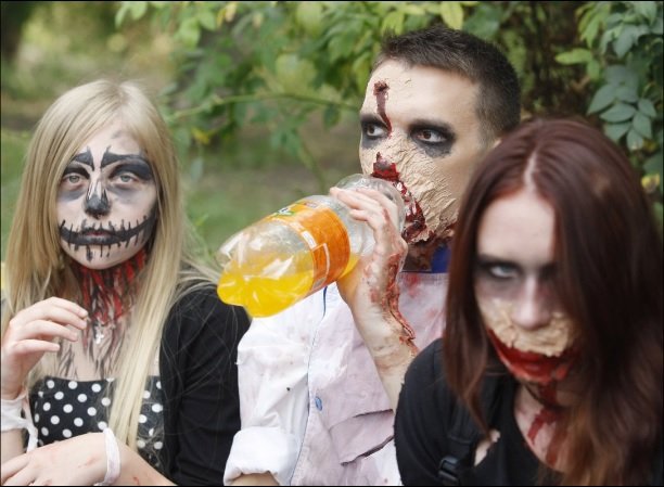 Учора у Києві відбувся парад нечистих сил – на вулиці вийшли зомбі та герої відомих фільмів жахів.