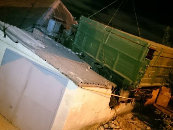 "Зняли вантажівку. ЗІЛ повністю зніс гараж. Кухня без даху, в залі пробита стіна. В момент приземлення вантажівки в будинку був тільки літній чоловік, відпочивав в спальні. Не постраждав", - додав журналіст.