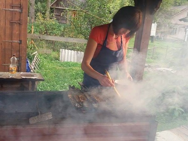 Туристам роздає вудочки, ті мусять спіймати рибину. Потім господар її чистить та смажить на мангалі.