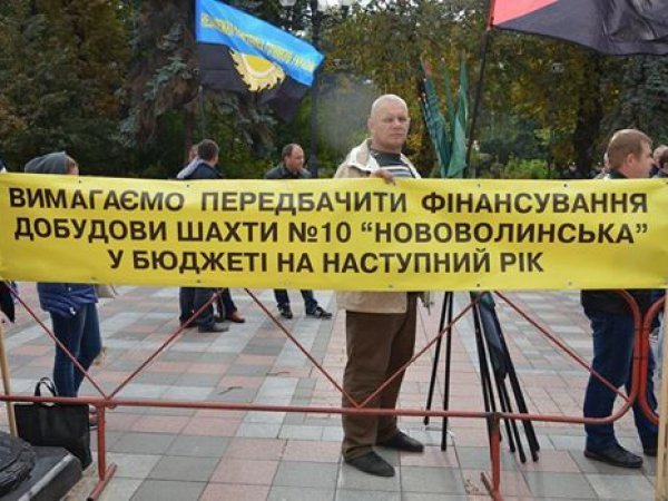 Гірники шахти «Нововолинська №10» пікетують під стінами Верховної Ради, оскільки обурені тим, що шахта й досі недобудована та не здана в експлуатацію.